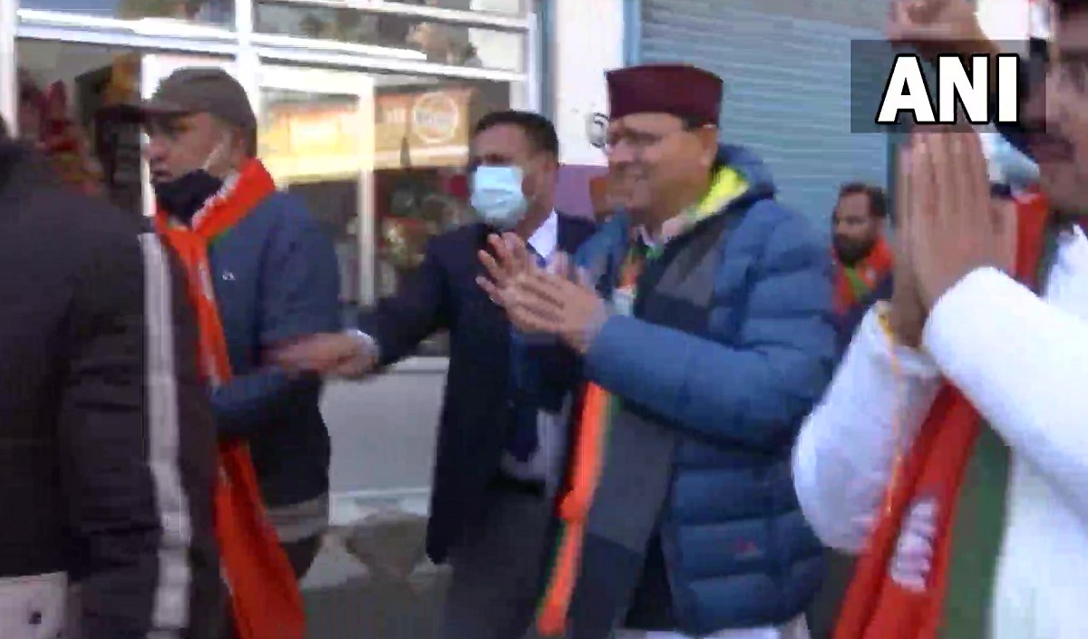 Uttarakhand CM Pushkar Singh Dhami holds door-to-door campaign in Tanakpur. #UttarakhandElections2022 pic.twitter.com/dse2HNiBba