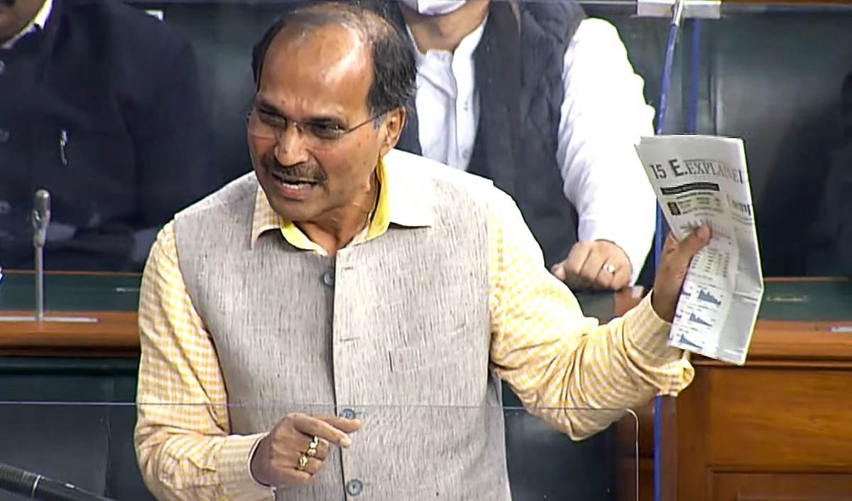 कांग्रेस नेता अधीर रंजन चौधरी ने पश्चिम बंगाल में अनुच्छेद 355 लागू करने के लिए राष्ट्रपति को पत्र लिखा