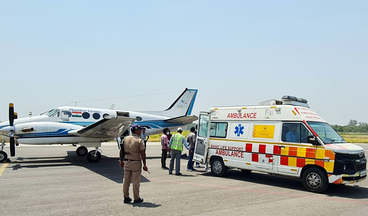 दुर्घटना में घायल किसान नेता कुरुबुरु शांताकुमार को एयर एंबुलेंस से बेंगलुरु लाया गया