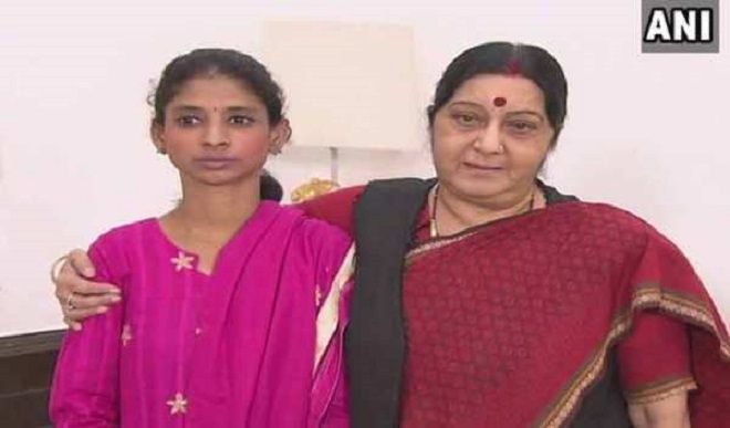 स्वराज गीता को ‘‘हिंदुस्तान की बेटी’’ बुलाती थीं। स्वराज ने गीता से मुलाकात करके उसे आवश्वासन दिया था कि सरकार उसके माता-पिता को ढूंढने के लिए प्रयास कर रही है। गीता, (जिसकी उम्र 30 साल के आसपास मानी जा रही है) अभी मध्य प्रदेश के इंदौर शहर में दिव्यांगों के एक गैर सरकारी संगठन (एनजीओ) ‘आनंद सर्विस सोसायटी’ में रह रही है। कई दम्पत्ति सामने आए और गीता के अभिभावक होने का दावा किया लेकिन गीता ने उनमें से किसी को नहीं पहचाना और उनमें से कोई अपने दावों के पक्ष में कोई ठोस सबूत भी नहीं पेश कर पाया। इंदौर के सरकारी अधिकारी और एनजीओ अब भी गीता के माता-पिता की तलाश में जुटे हैं। गीता ने भी हार नहीं मानी है और मंगलवार को वह एनजीओ के सदस्यों के साथ अपने परिवार की तलाश में नांदेड़ पहुंची। एनजीओ के सांकेतिक के विशेषज्ञ ज्ञानेंद्र पुरोहित की मदद से गीता ने पत्रकारों से कहा कि वह अपने माता-पिता को ढूंढने की कोशिश कर रही है। उसने बताया कि उसका घर एक रेलवे स्टेशन के पास था, जिसके पास एक अस्पताल, मंदिर और नदी भी थी।