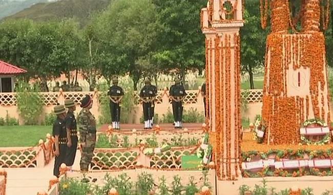 उन्होंने कहा, ‘‘ऑपरेशन विजय के दौरान अटल जी के उत्कृष्ट नेतृत्व को भारत हमेशा गर्व से याद करेगा। उन्होंने सामने से नेतृत्व किया , हमारे सशस्त्र बलों का समर्थन किया और विश्व स्तर पर भारत के रूख को स्पष्ट रूप से रखा।’’ रक्षा मंत्री निर्मला सीतामरण, तीनों सेनाओं के प्रमुखों-- थल सेना प्रमुख जनरल बिपिन रावत, नौसेना प्रमुख एडमिरल सुनील लांबा और वायुसेना प्रमुख एयर चीफ मार्शल बीरेंद्र सिंह धनोआ -- ने करगिल विजय दिवस के 19 साल होने के मौके पर यहां अमर जवान ज्योति पर पुष्पचक्र अर्पित किया और शहीदों को श्रद्धांजलि दी।