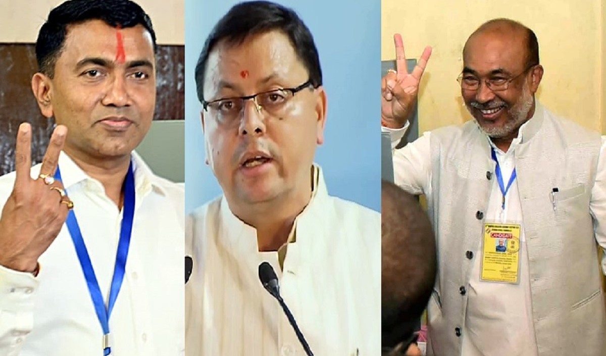 मणिपुर- उत्तराखंड और गोवा में बीजेपी बना सकती है सरकार, मुख्यमंत्री पीछे लेकिन राज्य में पार्टी को मिल रहा बहुमत