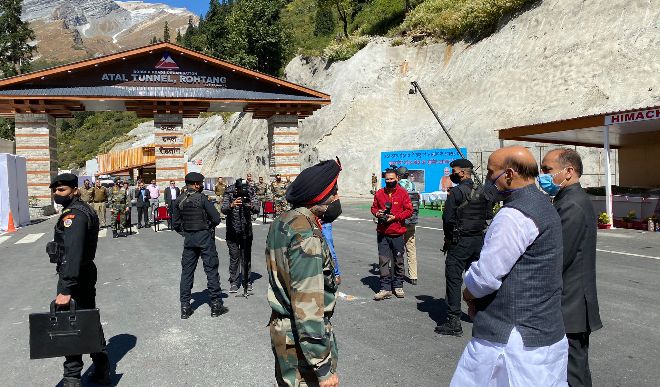 अटल सुरंग के उद्घाटन से पहले रक्षा मंत्री राजनाथ सिंह ने किया सुरंग का दौरा