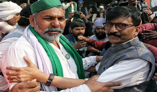 राउत केंद्र के तीन नये कृषि कानूनों का विरोध कर रहे किसानों के साथ एकजुटता प्रदर्शित करने के लिए दो फरवरी को दिल्ली की सीमा गाजीपुर बार्डर पर टिकैत से मिले थे और तब यह फोटो खींचा गया था।