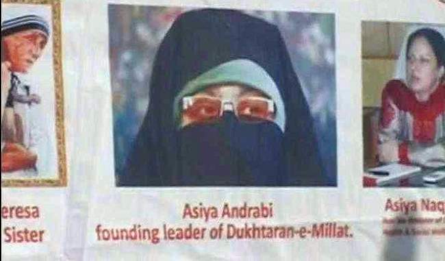 ''बेटी बचाओ, बेटी पढ़ाओ'' के पोस्टर में अलगाववादी नेता आसिया अंद्राबी की तस्वीर