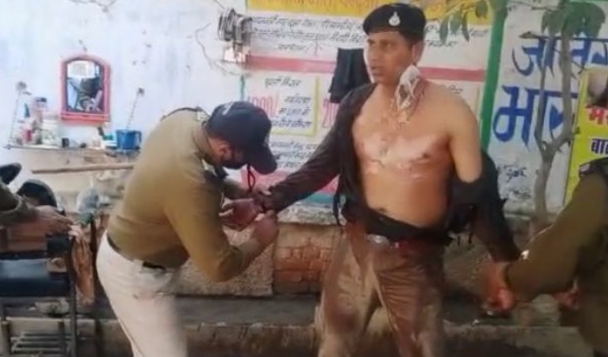 ग्वालियर में प्रदर्शनकारियों द्वारा जलता हुआ पुतला फेंके जाने से SI हुआ घायल