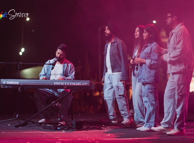 स्प्रिंग फेस्ट 2024-25 के ग्रैंड फिनाले में दिग्गज संगीतकार अमित त्रिवेदी का जादू देखने को मिला। उनके प्रदर्शन ने अंतिम शाम को जादुई बना दिया। अपनी बहुमुखी रचनाओं के लिए प्रसिद्ध अमित त्रिवेदी ने "नमो नमो," "शाम शानदार," और "लव यू ज़िंदगी" जैसे सुपरहिट गानों से दर्शकों को मंत्रमुग्ध कर दिया। श्रोता हर गाने पर झूमते और गुनगुनाते रहे, जिससे कलाकार और दर्शकों के बीच एक अनोखा संबंध बना। रात का समापन दर्शकों की तालियों और जोश भरे स्वागत के साथ हुआ, जो इस महोत्सव का एक उपयुक्त समापन था।
