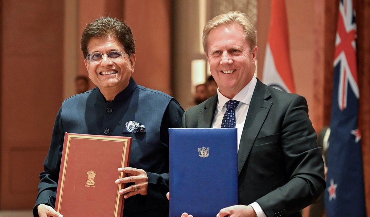 भारत और न्यूजीलैंड के बीच लंबे समय से प्रतीक्षित मुक्त व्यापार समझौता आखिरकार आज नई दिल्ली में हस्ताक्षरित हो गया, जिसे दोनों देशों के आर्थिक संबंधों में एक ऐतिहासिक कदम माना जा रहा है। इस समझौते पर भारत के वाणिज्य मंत्री पीयूष गोयल और न्यूजीलैंड के व्यापार मंत्री टॉड मकले की उपस्थिति में हस्ताक्षर किए गए। इस अवसर पर न्यूजीलैंड के प्रधानमंत्री क्रिस्टोफर लक्सन ने इसे एक पीढ़ी में एक बार होने वाला महत्वपूर्ण समझौता बताया, जो वस्तुओं और सेवाओं के व्यापार, निवेश प्रवाह और श्रम गतिशीलता के लिए नए रास्ते खोलेगा।
